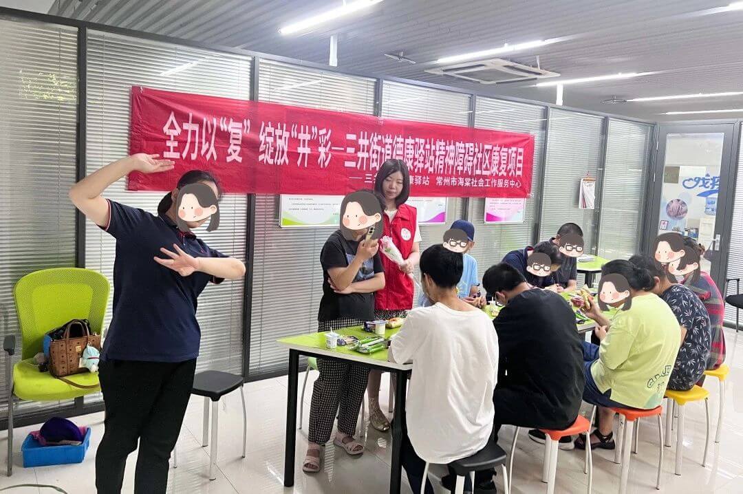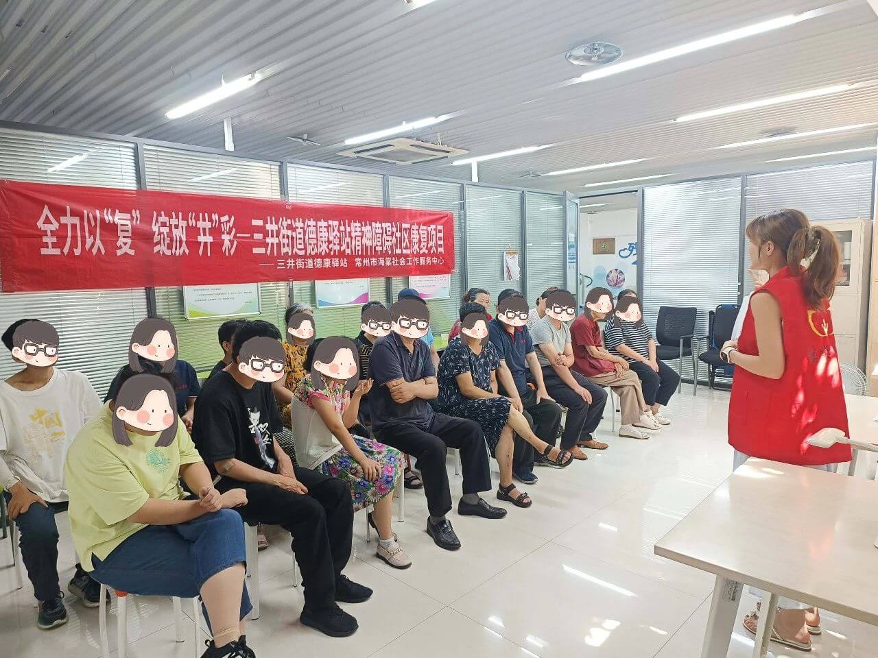 三井街道德康驿站位于兰翔社区党群服务中心内,全年紧扣全力以“复”,绽放“井”彩康复核心,为街道精障患者及家属提供居家康复指导服务,做到一人一档、动态更新、精准服务。依托三井街道现有残疾人工坊作为康复站点,通过建立“机构+社区+家庭”联合康复模式,因地制宜开展以辅助性就业为主、其他特色康复训练为辅的社区康复服务。
