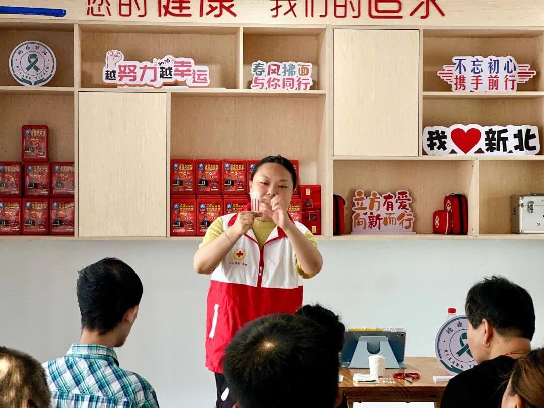 红十字救护师卜清老师由具体案例切入,指出了夏季高温对人们健康的影响。同时,她将夏季预防中暑知识与生活实际相结合,重点阐述了中暑类型、中暑后的对策及如何防护中暑,提醒大家高温天气在户外一定要做好防晒保护措施,身边常备解暑药品等。