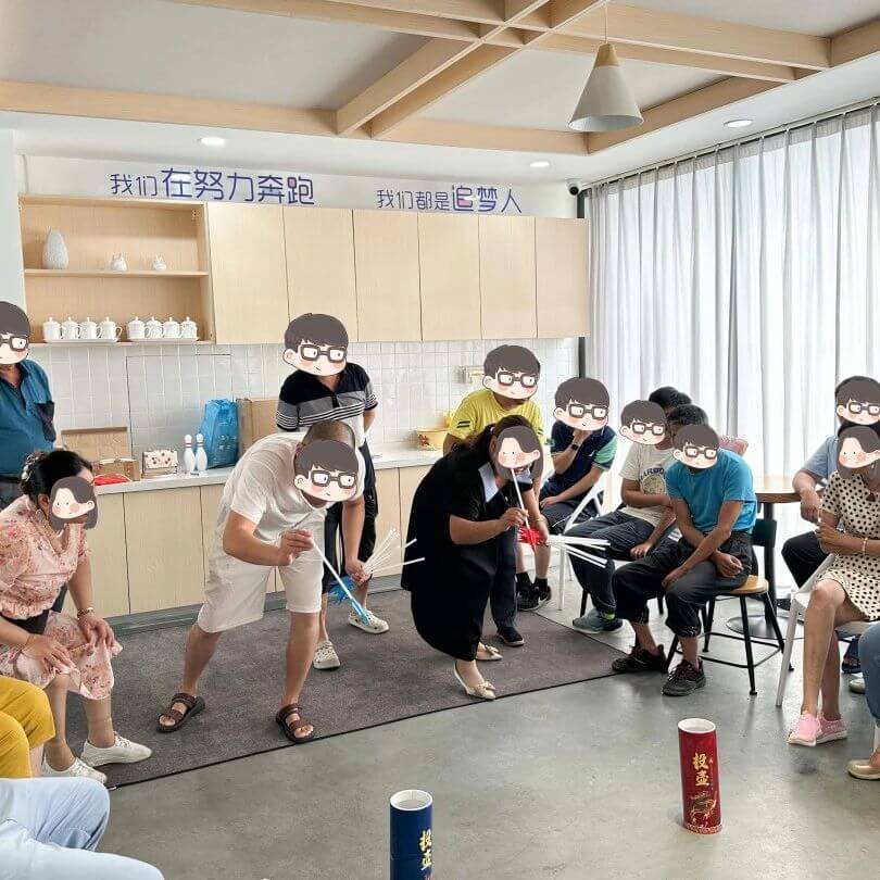 为使康复员们更安全、快乐地参与其中,海棠社工降低了本次活动的运动强度、提升了游戏趣味性、增加了奖励机制,分别设置了“国风投壶”和“趣味投篮”两个项目,从不同方面锻炼动手动脑、手眼协调的能力。论是投壶的精准定位,还是投篮的奋力一搏,康复员们精神抖擞,各显身手,喝彩声、欢呼声、加油声此起彼伏,现场氛围一度达到高潮。