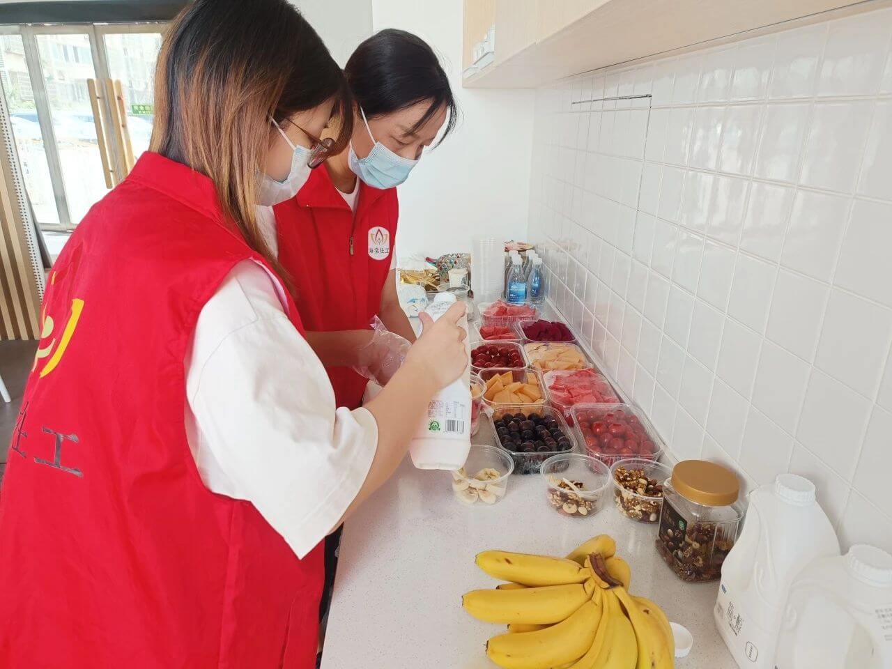 在爱立方,海棠社工早早准备好了食材,将新鲜的水果、坚果、酸奶以及一次性用具等摆放整齐。活动伊始,社工带领开展夏日健康分享会,从防晒补水、作息调整,再到饮食运动,社工分享了实用的夏季清凉指南。康复员们也积极交流各自度夏小妙招,尤其是说到各自喜欢的夏日水果,现场一片热烈。随后,社工简单介绍水果捞制作流程,并带领康复员们戴上手套,挑选喜欢的水果,放上香脆的坚果,淋入醇厚的酸奶,一碗碗色彩斑斓的水果捞便制作完成了。