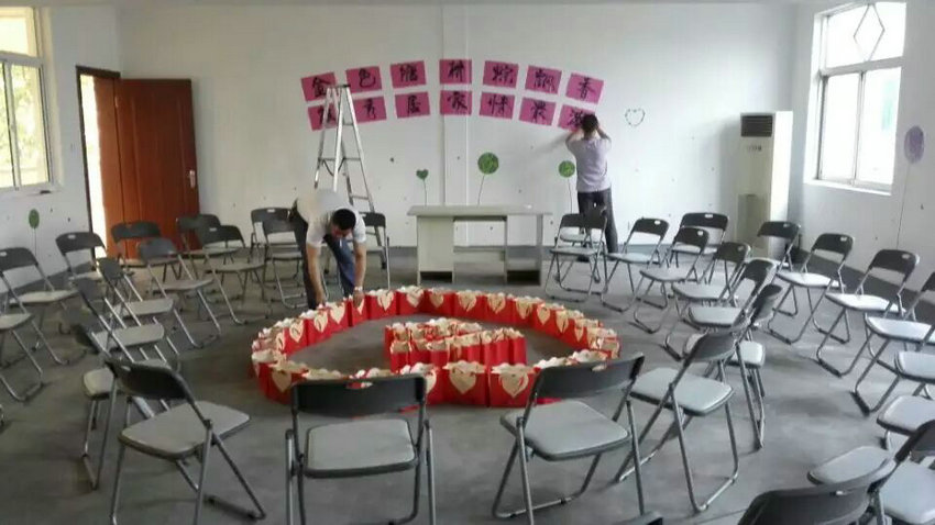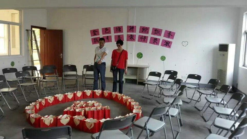 看:吴总和王助理用心、用爱、用真情布置着与老人欢庆端午的小屋!用无限的爱将送给老人的礼物细心摆放着。