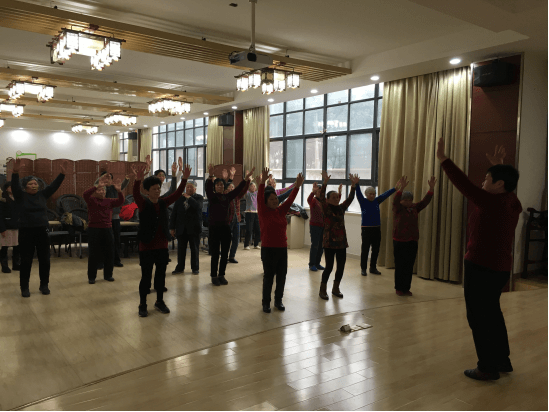 2016年1月4日上午,枝秀居家特邀塘桥专业拍手操老师到东莱文化中心,带领社区的老年朋友们一起学习跳拍手操。