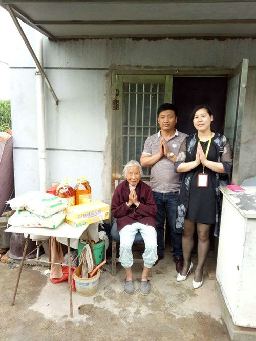 2016年6月8日上午,张家港市枝秀居家养老服务中心金港站行政人员及普贤公益,来到了独居高龄老人陈玉官家,进行了看望,并送去了慰问品、节日慰问及500元援助金。