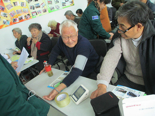 最后,枝秀养老的工作人员为老人现场量血压,测血糖,在关爱老人们的精神健康之后,送来维护他们身体健康的福音。