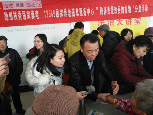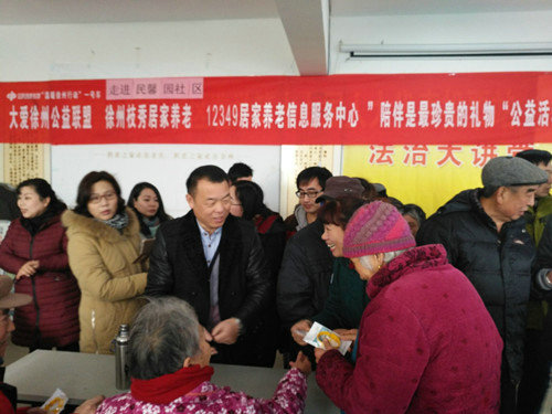 徐州市枝秀居家养老服务中心作为爱心企业代表来到了公益活动现场,此次“大爱彭城 温暖徐州”大型公益行动的目的是集合爱心公益团体和爱心企业为孤寡老人、困难群体和环卫工人献爱心,把政府的温暖、爱心企业的温暖和公益志愿者的温暖传递到徐州的每一个角落。