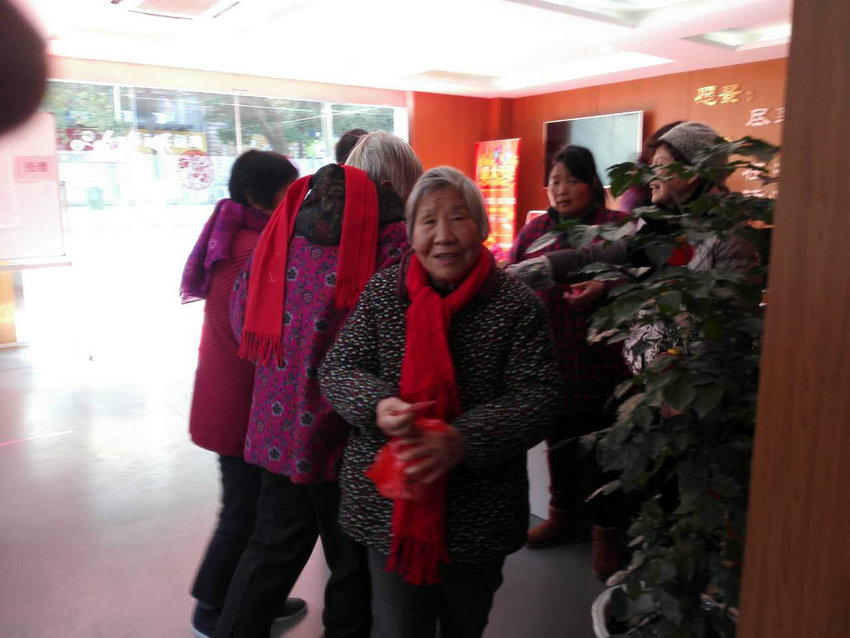 每位老年朋友进来就领到一份礼物---汤圆,祝福他们幸福团圆