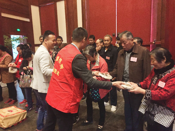 ‘枝秀人’为长者们送上精心准备的重阳糕,大家开心的合不拢嘴。