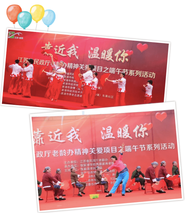 2019年5月30、31日,在张家港市杨舍镇、锦丰镇的大力支持下,江苏省民政厅老龄办携手张家港市枝秀居家养老服务中心举办连续两天的端午节主题精神关爱项目活动。