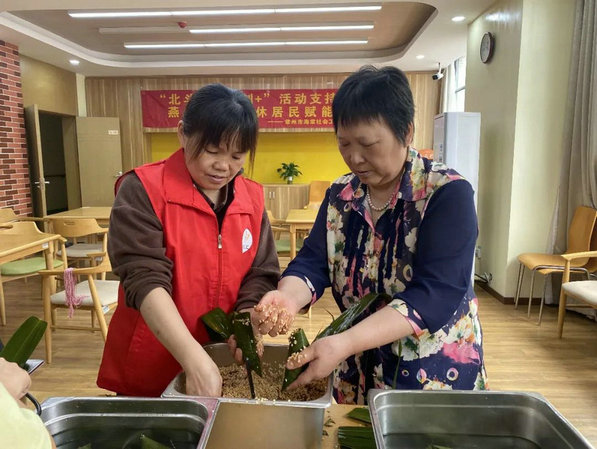 粽子包好后,海棠社工来到燕兴社区困难家庭、独居老人、残疾人和孤寡老人家中,与他们共享端午安康,并询问他们近期的生活、身体状况,关心了解他们的实际需求,让他们真切感受到党和政府的关爱。