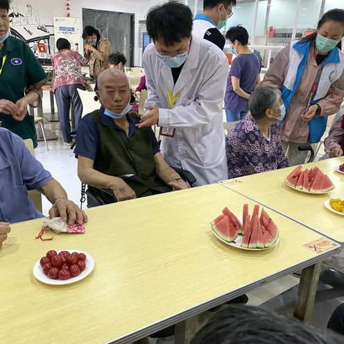 此次活动特邀春江街道综合性养老服务中心的入住长者们共同参与,他们伴着音乐做起了熟练的手指操、品尝甜美的水果,一起分享佳节的喜悦。