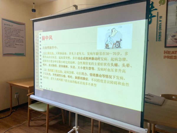讲座中,吴老师结合老年人生理特点相关知识,图文并茂地向老年人详细地介绍高血压、糖尿病、冠心病等慢性疾病的起因、症状和造成的危害,同时就如何有效预防、治疗等进行了详细阐述,她还重点强调老年人一定要注意均衡饮食、适时运动,注意生活细节,保持身体健康。