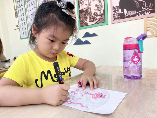 30分钟的自由创作时间挥动画笔专注的样子、时不时互相切磋下技艺,小画家们看着自己完成的作品都开心自夸起来。