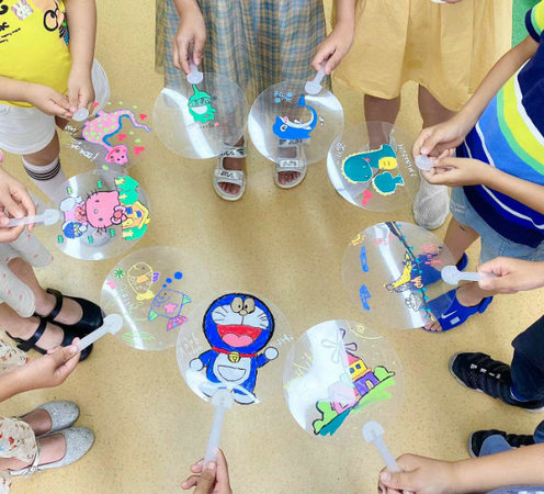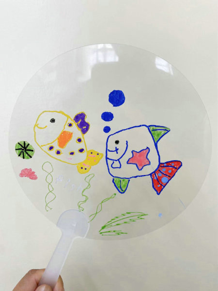“卡通人物”、“海底世界”、“田园风车”等一幅幅精美作品纷纷出炉,透明的扇子经过孩子们的巧手都变得栩栩如生。