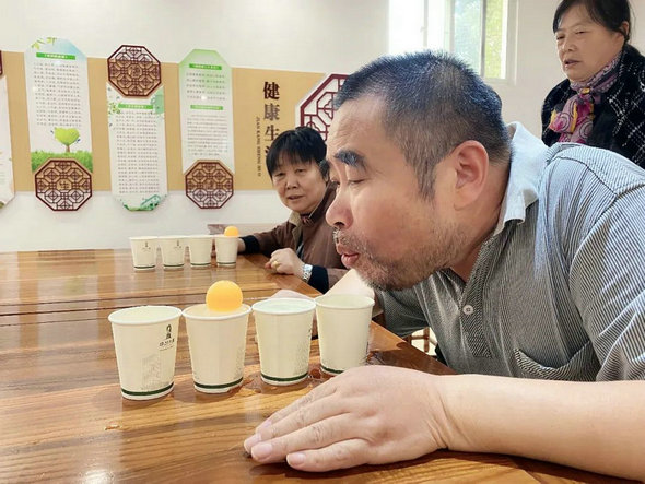 现场爱立方成员们个个自信喜悦,积极参与趣味套圈、吹乒乓球运动,互相间加油打气,呐喊助威。