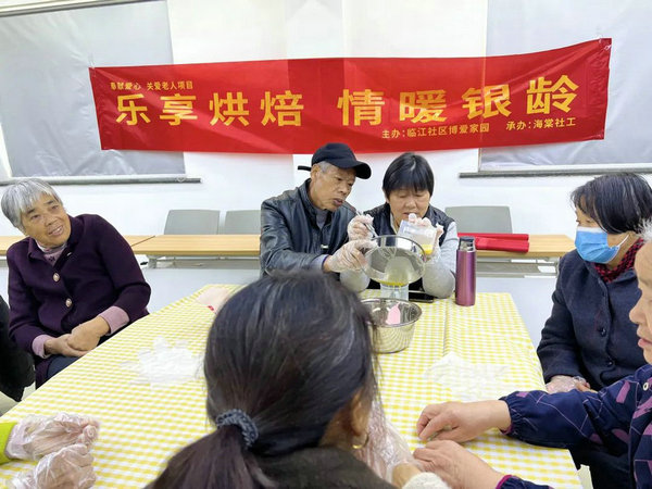 为了培养社区老人的兴趣爱好,促进长者相互间的沟通和交流,丰富日常生活,11月23日上午临江社区博爱家园携手海棠社工开展“乐享烘焙,情暖银龄”老年人烘焙活动。此次活动吸引了30位社区老人参与。
