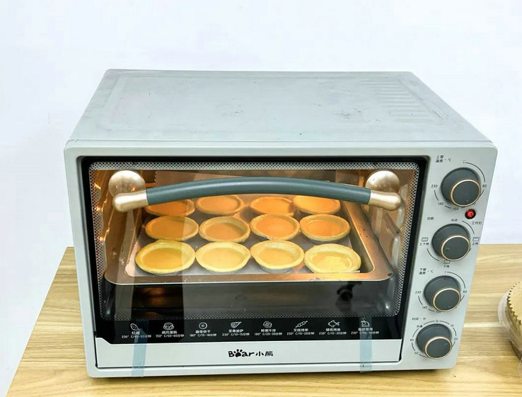 20分钟过去了,随着烤箱发出“叮”的一声,一盘盘蛋挞烤好出炉了。金灿灿的蛋挞外皮酥脆,奶香味浓郁,老人们品尝着自己亲手制作的蛋挞,一个个笑开了颜,“焙”感快乐。有些老人说到:“我烤的蛋挞味道真不错,还要再烤几个带回去给我孙子孙女吃,他们小孩子就爱吃甜品”。