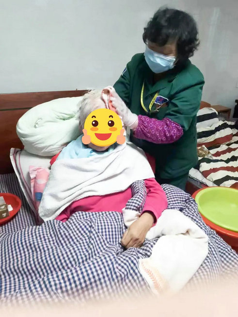 渐渐地,潘先生从一开始只能站立到现在可以扶着慢慢走路,同时也愿意敞开心扉跟阿姨交流了。家属别提有多高兴了。每次上门2小时陈广梅都会给潘先生擦浴、洗头、做些肢体锻炼、借助器具移动,开导他多讲话。