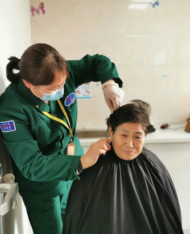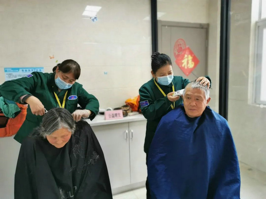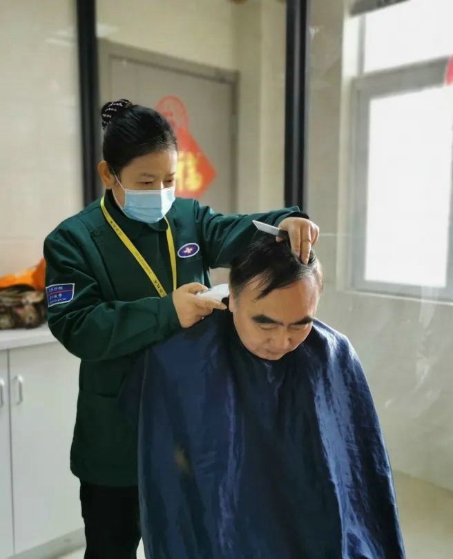 一面镜子、一把梳子、一把剪子、一把电推,简单的几样工具就组成了一个老人爱心理发店。伴随着手剪的“咔嚓”声以及电推的“嗡嗡”声,老人的发型变得整洁利落。海棠志愿者们用娴熟的理发技术、热情周到的服务,赢得了老人们的称赞,现场一片欢声笑语。