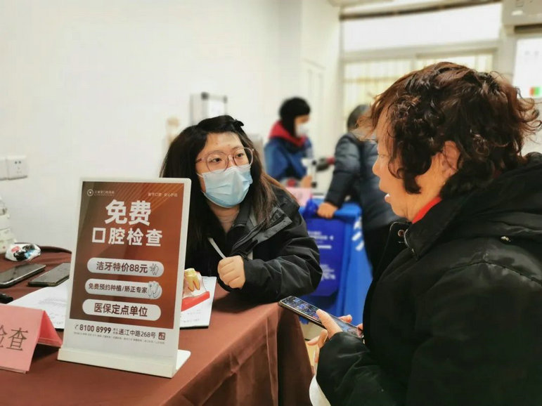 为老人理发的同时,海棠社工的志愿者们逐一为居民建立社区居民健康档案,开展血压、血氧、血糖测量服务并做好记录,同时普及健康生活小知识,提升老人们健康生活的习惯。爱尔眼科的医生认真为老人检查眼睛及科普用眼健康。北极星口腔的医生们热情为老人们进行口腔检查,从牙齿的预防、牙齿的损伤修补进行知识普及。