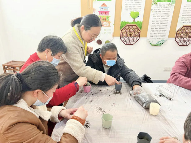 为进一步丰富爱立方朋友们的精神文化生活,加强相互之间沟通与交流,正值第45个植树节到来,3月7日下午海棠社工在江湾日间照料中心开展DIY多肉种植活动。