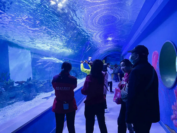 进入海洋馆,康复员们感觉自己置身于海底世界一般,各式各样、色彩斑斓的海洋生物让人眼花缭乱;鱼类成群结队环绕身边仿佛触手可及。在工作人员专业的讲解下,康复员们进一步认识了海洋生物的种类、了解一些海洋生物的习性和生活方式。大家相互交流着自己看见的新奇景色,觉得奇妙极了。