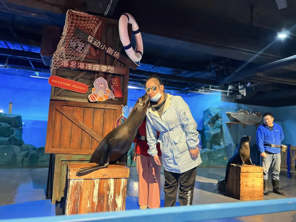 超萌的海狮奇趣表演赢得了康复员们的阵阵掌声。钻圈、匍匐前进、后肢站立、倒立...康复员们争前恐后地与海狮进行互动,憨态可掬的小海狮让现场的氛围变得格外热闹。海棠社工们在活动中时刻留意着康复员们的身体和心理状况,同时也用相机拍下了康复员们微笑的瞬间,记录了此刻的美好。