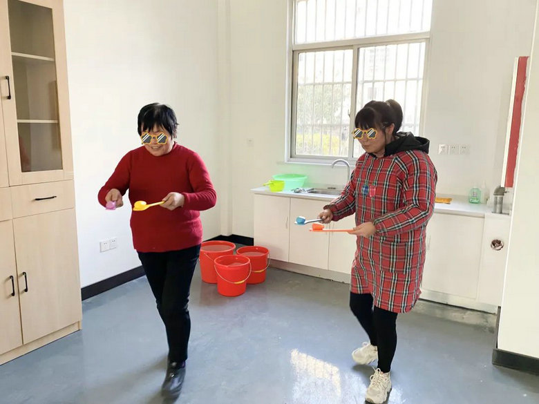 海棠社工向康复员们介绍平衡勺的特点、用途 ,并手把手进行示范,讲解要领。经过一番练习后,康复员们渐渐掌握了技巧,从刚开始小心翼翼紧绷身体的状态到逐渐放松,慢慢领悟到了平衡的重心所在。社工将康复员们两两分组,进行比拼,每位成员都熟练地掌握了今日的训练内容,纷纷表示:“没想到在玩中也能得到锻炼。”