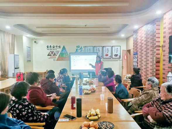 活动的第三部分,海棠社工向大家介绍了步入老年阶段后,人的心理会有很多变化,变得健忘、焦虑、情绪多变、心神不定等等;引起了现场很多长者们的共鸣,大家你一言我一语地纷纷说出了自己的经历。吴阿姨说:“退休后觉得自己不被需要了,自己也不知道应该做什么,后来报名学习了会计证,觉得每天学习让生活很充实,没有时间想乱七八糟的事情。”最后海棠社工也与老人分享规律的生活节奏、适当的业余爱好和娱乐活动都是有利于消除自身负面情绪的有效方式。