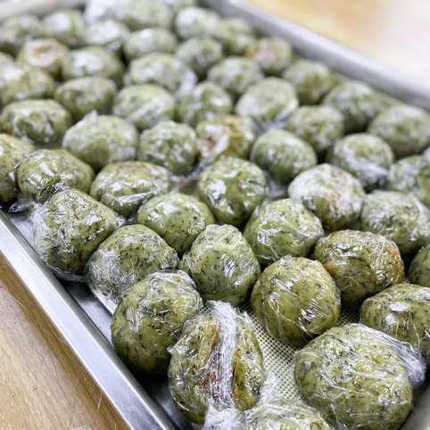 活动伊始,海棠社工首先向居民们介绍了青团的由来以及清明节吃青团这种习俗的来历。又详细地讲解了青团的制作流程:和面团、揉捏、放馅料、包圆...;大家听得津津有味。当社工将材料摆上桌时,学生们都十分新奇地围了上来:“哇,闻起来好香啊!”。志愿者和社区的爷爷奶奶们都踊跃地动起手来,手把手地教孩子们做青团。“首先把面团握在手里,把它捏成深一点的杯子状,再把馅料装进去,最后慢慢地收口......”糯糯的青团被包上馅料,小心的揉搓,不一会一个个碧绿光滑的团子跃然桌上。