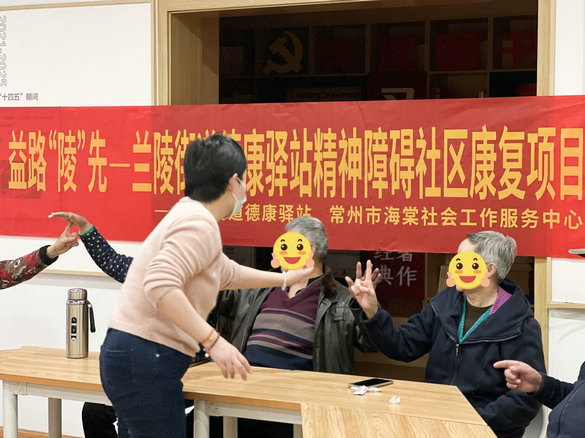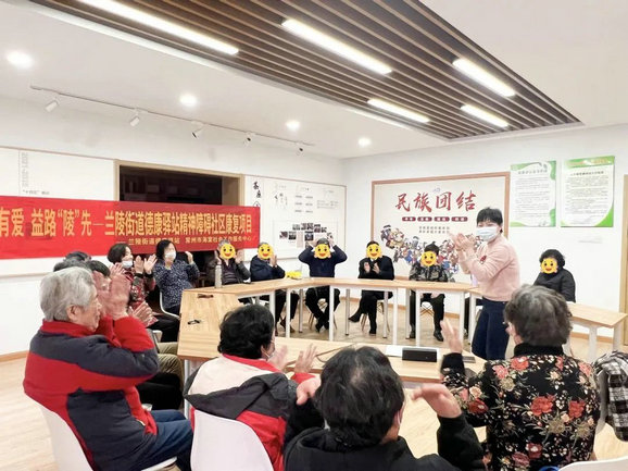 4月7日下午,常州市海棠社会工作服务中心携手常州市德安医院在兰陵街道德康驿站开展了一场音乐治疗之音乐分享活动。为增强团体参与感、信任感与归属感,冯老师引导康复员们围成一圈,带领康复员们在轻松、融洽的氛围中开展此次音乐疗愈,本次活动在热身游戏中拉开了帷幕。