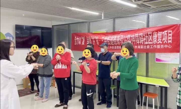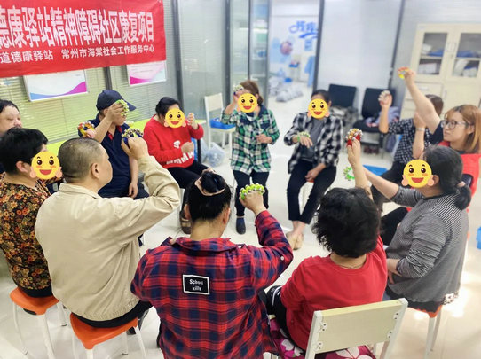 音乐治疗是运用特定的音乐情境和音乐体验来消除康复员一些心理障碍问题的一种方式,同时也可以通过手部的律动来锻炼协调能力。2022年4月18日,三井街道德康驿站联合海棠社工带领康复员们开展奥夫音乐律动。
