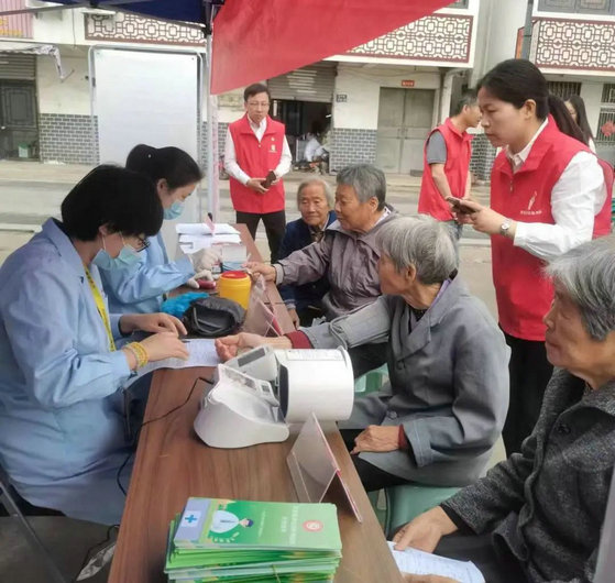 活动现场,张家港市枝秀居家养老服务中心志愿者团队为金村的老人们提供了理发等便民服务,张家港养心护理站医护团队为现场参与人员提供了健康管理服务,给老人们测量了血压、血糖、血氧,仔细询问了老人的身体情况及既往病史,为每位老人建立好个人健康档案,另外还对用药注意事项做了提醒,嘱咐老人们提高自我的健康意识。