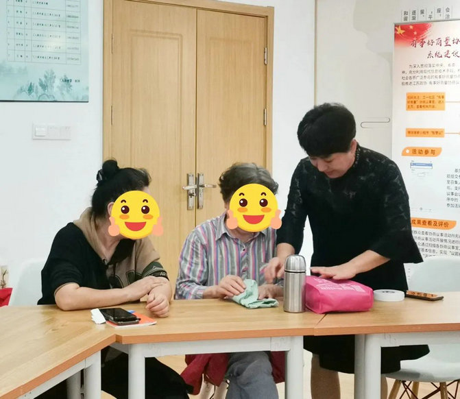 整个授课过程轻松活泼,康复员与社工、老师间互动频频。大家认真细致地跟着老师的示范动作及要领进行演练。老师每讲完一个步骤,社工都会检查康复员有没有跟上,然后再一对一指导没有学会的学员。康复员们纷纷表示这次收纳技能课的实用性很高,通过这节课的学习,不仅提升了自己的收纳技能,也会更好地维持整齐干净的居家环境了,真正感受到了“收纳技能”的魅力!