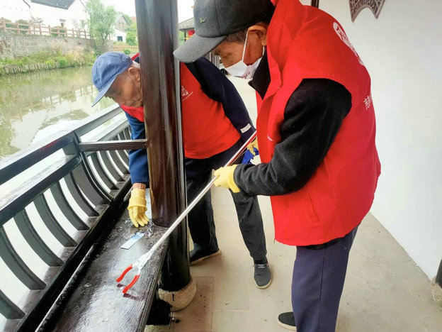 随后,慈乌志愿者及活力老人积极参与针对沿河长廊的整治行动,充分发扬热爱劳动的精神,不怕脏、不怕累,每一个劳动者的身影都是长廊上一道靓丽的风景。在对长廊、河道边缘的垃圾以及座椅、扶手上的灰尘进行打扫清理后,沿河长廊展现出了它原本的魅力,现场就有老人称赞它是一个休闲、娱乐的好地方。