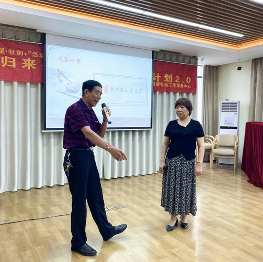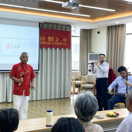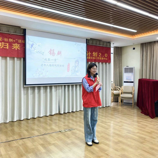 表演开始前,海棠社工首先为老年朋友们介绍了锡剧的历史渊源: