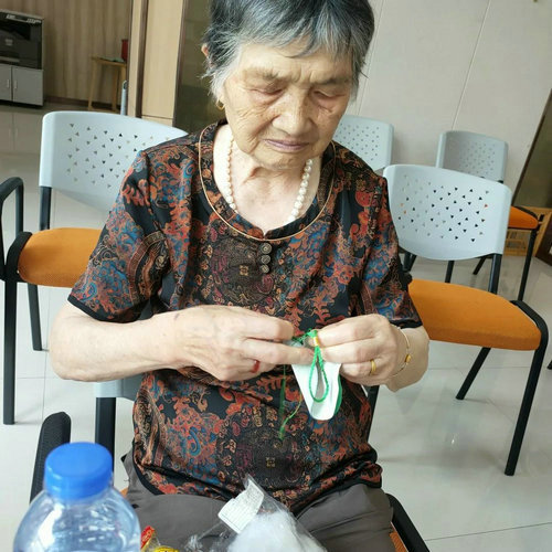 在端午香囊制作环节,奶奶们一边谦虚着说自己做的没有以前好,一边熟练的穿针引线,不一会儿一个个圆乎乎的香包就诞生了。爷爷们也是精神矍铄,相互“攀比”,喊着“女同志那都快好了,我们加油!”大家拿着自己完成的香包充满了成就感,相互展示,有个爷爷说“回去让我老婆看看,再帮我改改”,大家笑作一团,气氛和谐温馨。