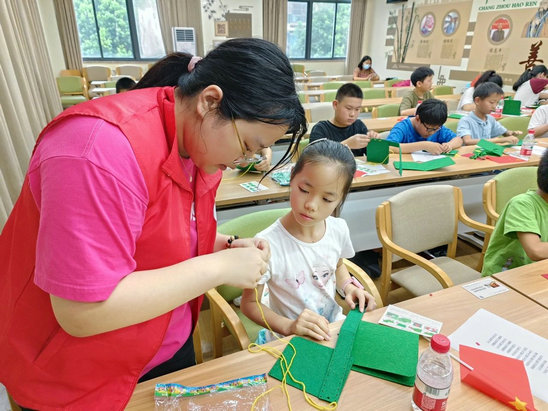 党建引领促成长,少年儿童心向党。为庆祝中国共产党成立102周年,教育和引导少年儿童厚植爱党爱国情怀,同时增强动手能力,提高综合素质,近日,常州市海棠社会工作服务中心在三井街道社工站开展了儿童暑期夏令营第一场活动——自制小红军挎包。