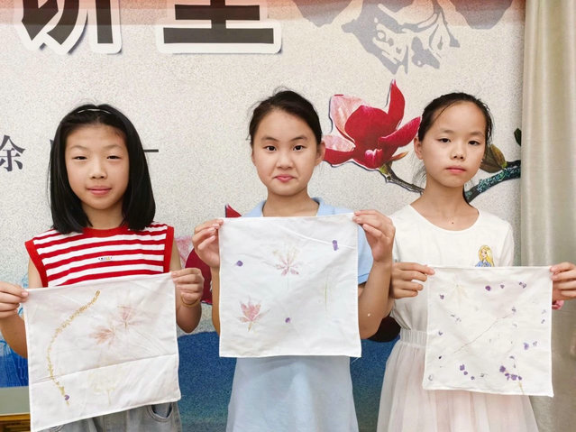 植物拓染充满未知的惊喜。本次活动向孩子们科普了植物的奥秘和古老非遗文化,带领孩子们在实践中追寻自然的密码,在敲打中培养艺术的美感,同时也留下了属于这个夏天的美好体验和快乐记忆。