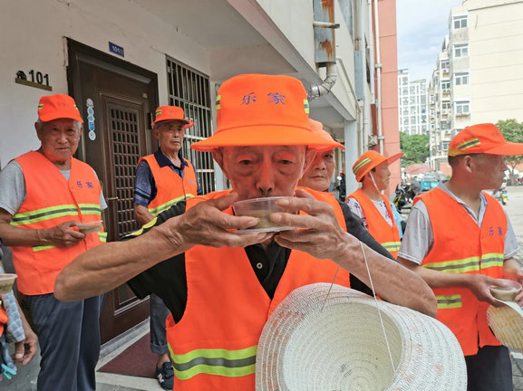 一小碗手熬绿豆汤,清热解暑,营养美味,在炎炎夏日增添了一抹绿色。活动最后,在海棠社工的带领下,孩子们将一份份现煮的绿豆汤和亲手绘制的草帽一起送给我们身边坚守一线的清洁工们,送上温馨的关怀,并提醒他们注意防暑和休息。“城市美容师”以自己的汗水和辛劳换来了大家清洁美丽的生活环境,他们是我们心中的“最美劳动者”。戴上充满童趣的草帽、喝着清新爽口的绿豆汤,清洁工们感受到了夏日的清凉和孩子们的爱心。