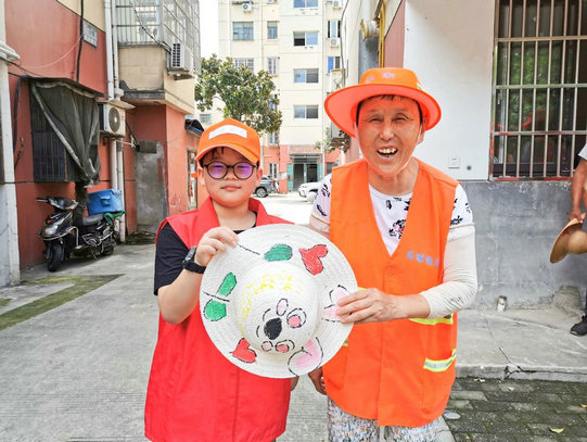 图 | 小志愿者给清洁工送帽子