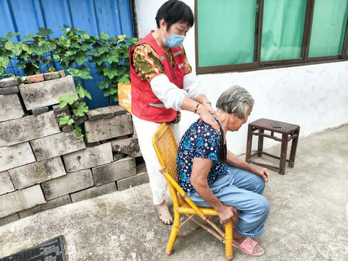 透过蓝色的天空,太阳像火球一样悬挂着,地面被炙烤着,过去热闹的小街上,人也变得稀少了,而张家港市枝秀居家养老服务中心塘桥站的护理员就是在这样的环境中走向千家万户,为老年人提供温馨、贴心的服务,呈现了烈日下的一道靓丽风景。