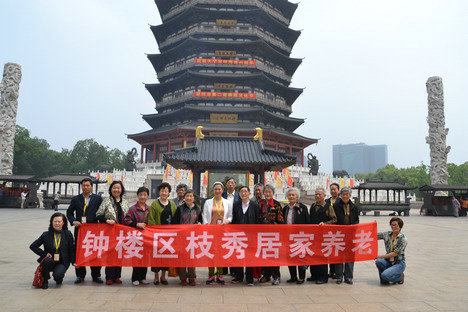 2013年5月10日,常州枝秀家政服务有限公司组织老干部局的老干部游天宁宝塔,图为部分人员合影。