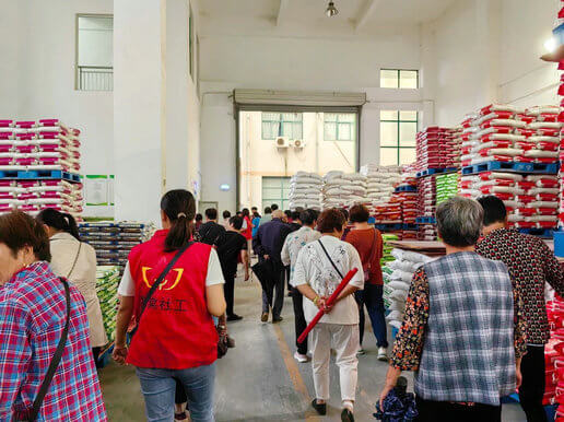 康复员们首先来到全自动化大米加工车间内,一整条迅捷的现代化机械流水线赫然出现在眼前,喷香的大米被迅速地装袋打包,一切运行井然有序,康复员们深深感叹科技的发展。