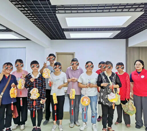 活动开始,社工为大家介绍了中秋节的民俗传统和经典传说。康复员们听得十分投入。随后在康复员们期待地目光中,中秋花灯制作开始了。社工将制作材料分发给大家,一步一步耐心为大家演示制作方法,康复员们积极尝试。经过大家精心创作,一盏盏花灯点亮了活动现场。