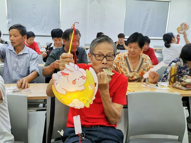 活动接近尾声,大家提着精巧别致的花灯围坐在一起,品尝着亲手制作的月亮饼,聊着邻里家常,互相送上了最诚挚的祝福,节日氛围在此刻达到了最高潮。